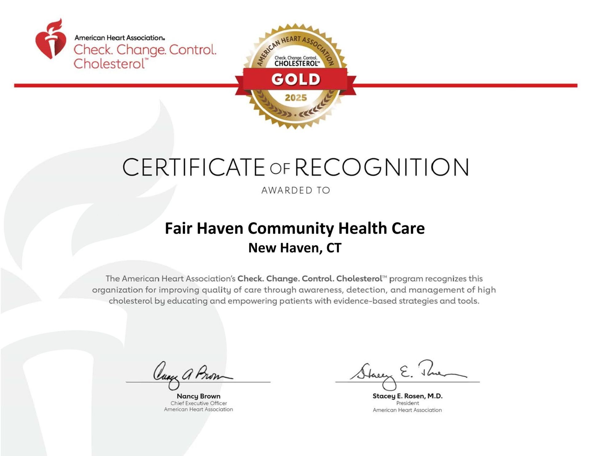 Check. Change. Control. Cholesterol Achievement Award – Gold Level