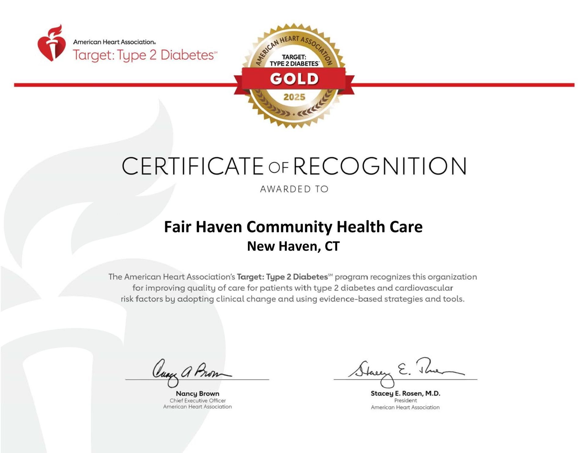 FHCHC Receives National Recognition from the American Heart Association for Clinical Quality!